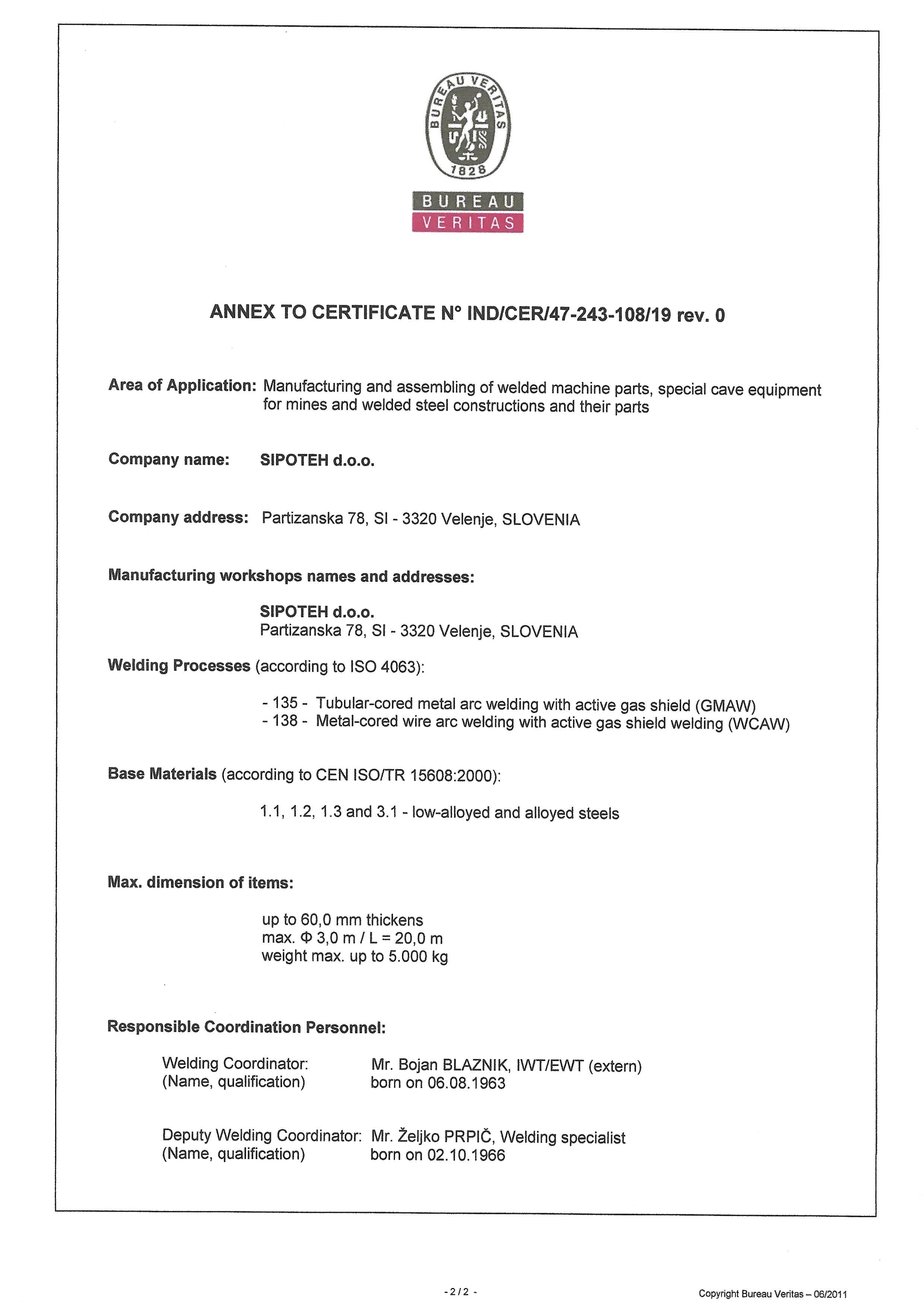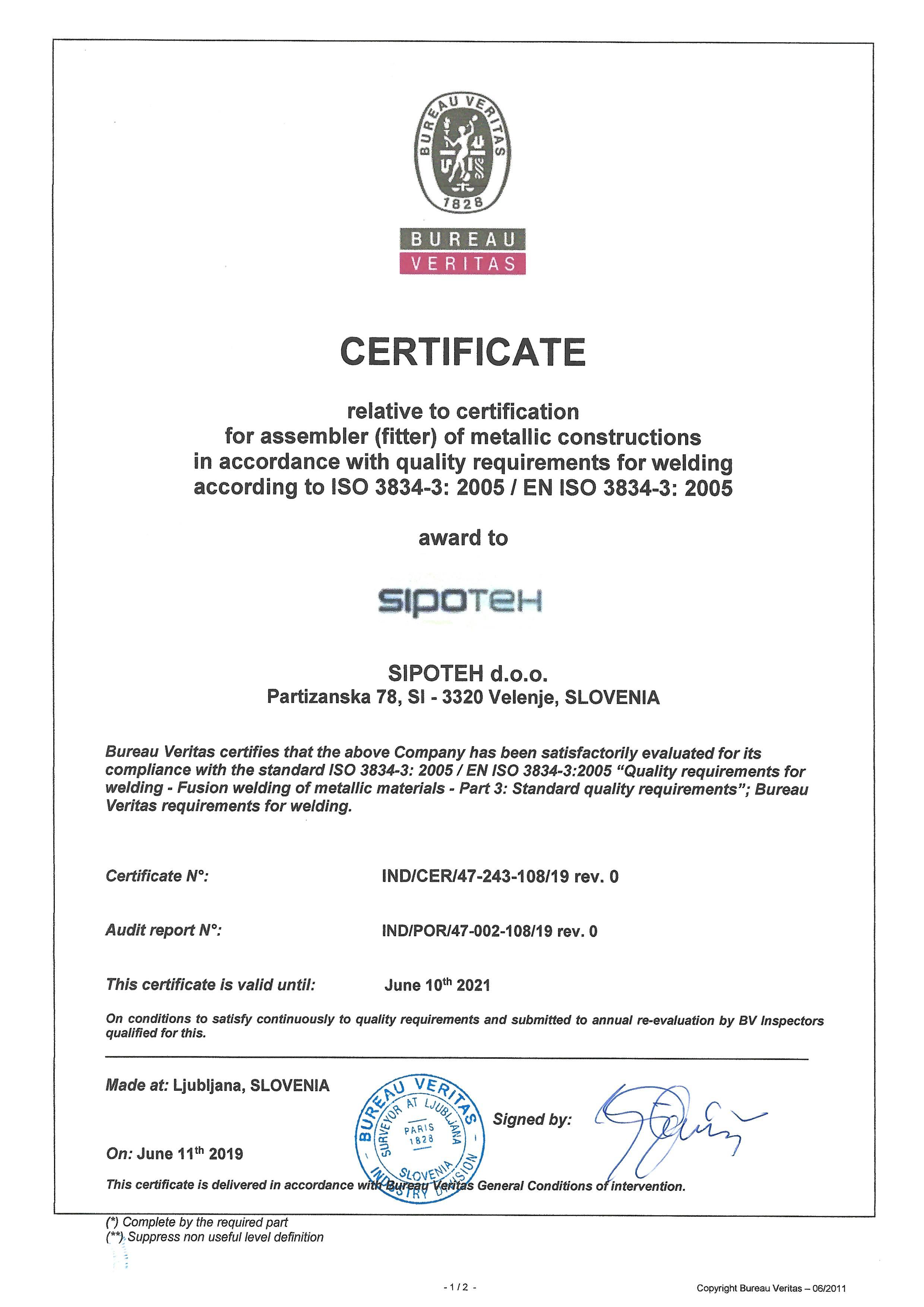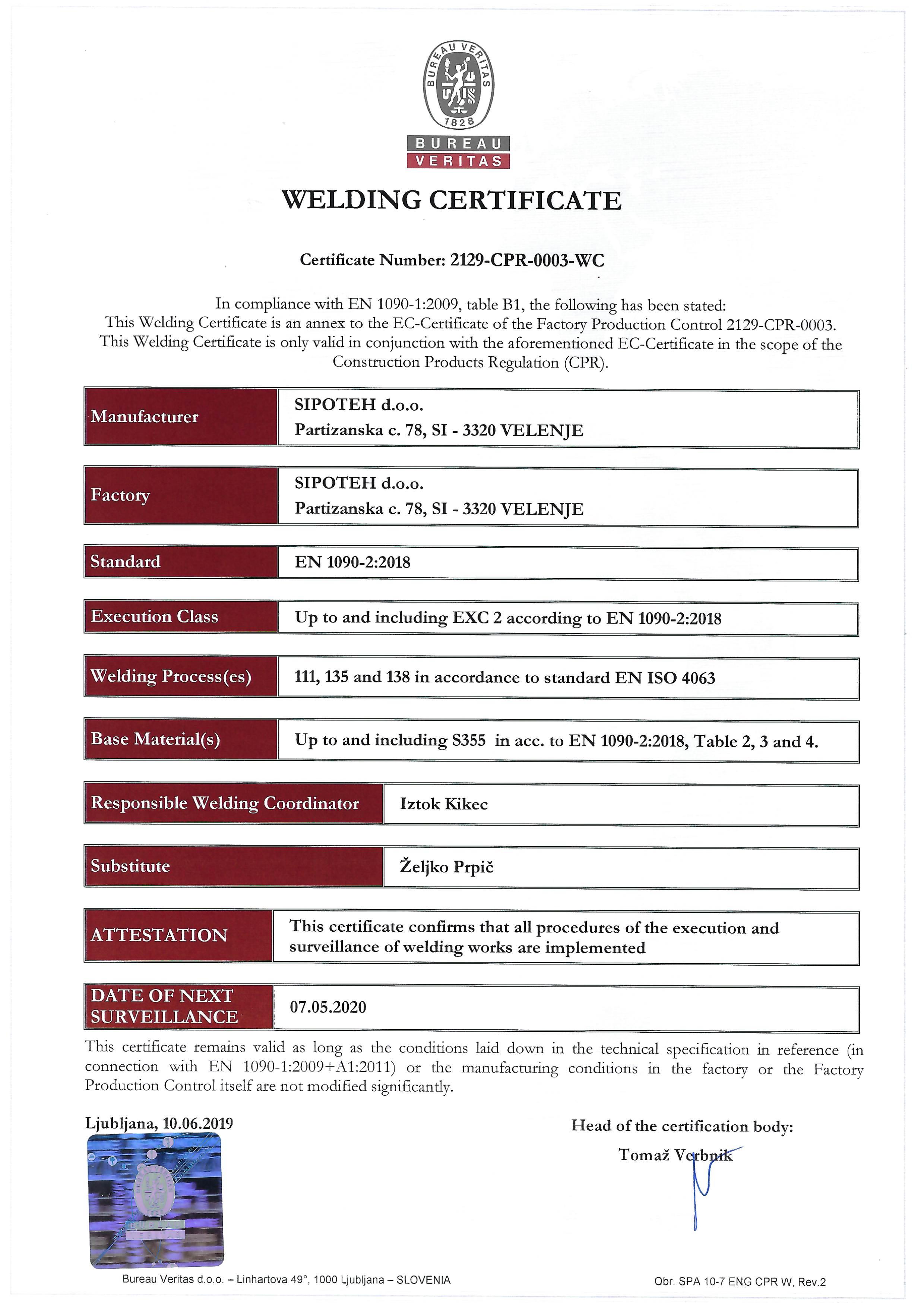 CERTIFIKAT VARJENJA EN1090-1: 2009